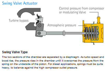 So in the simplest case the actuator nipple is connected with a hose that leads directly to a source of boost pressure, this means that the boost pressure is fixed to whatever the "spring pressure" of the actuator is. Actuatuors are avialble in different psi ratings. For example many actuators will open at 7 psi.