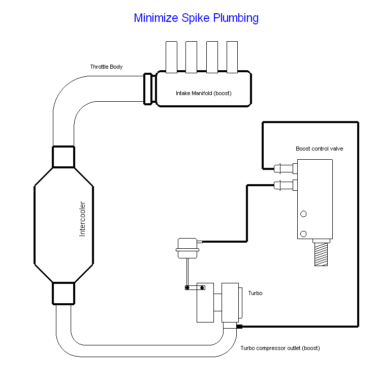 Some cars with very restrictive intercoolers or plumbing may experience a pressure drop and a boost drop at high airflow (rpm), in order to maintain a flat boost line, and to enhance response the following plumbing can be tried. On some cars this may lead to a boost spike, but not always. Alao keep in mind that a if you have a very restrictive intake system you may not want to push it anyway!
